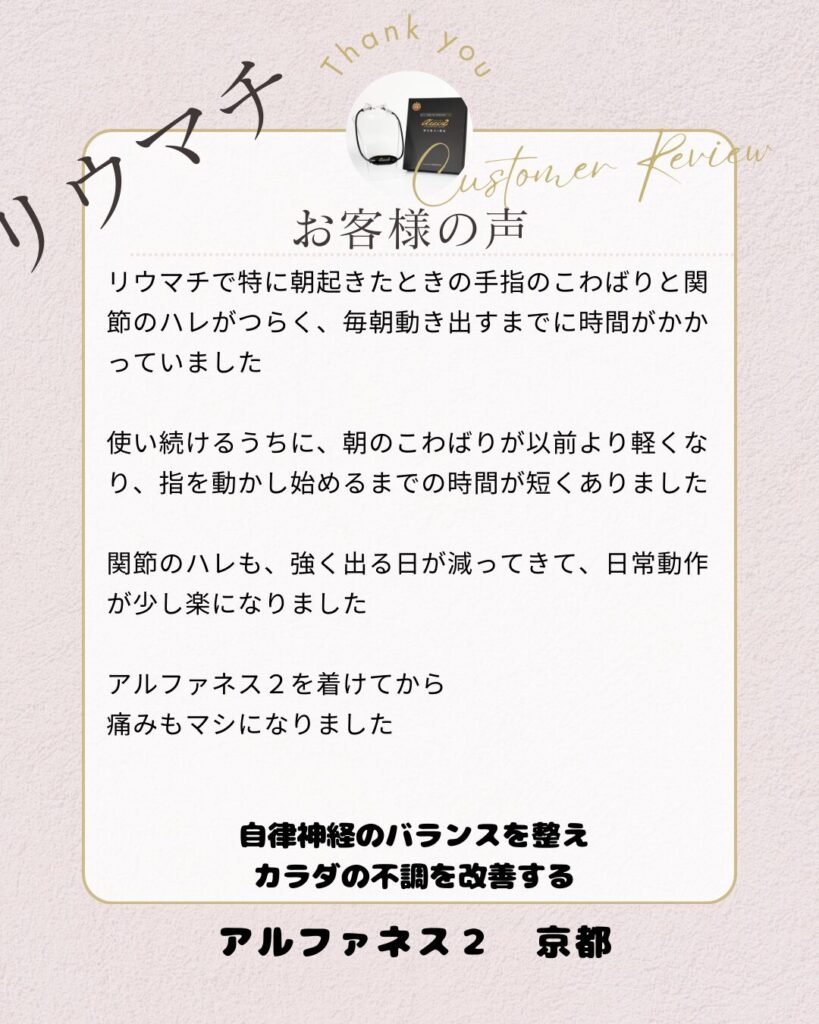 朝のこわばりや関節のハレが少し和らいだことで、