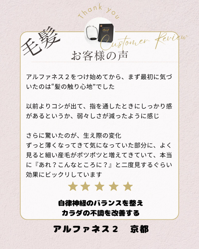 アルファネス2をつけて最初に変わったのは、まさかの「髪」でした