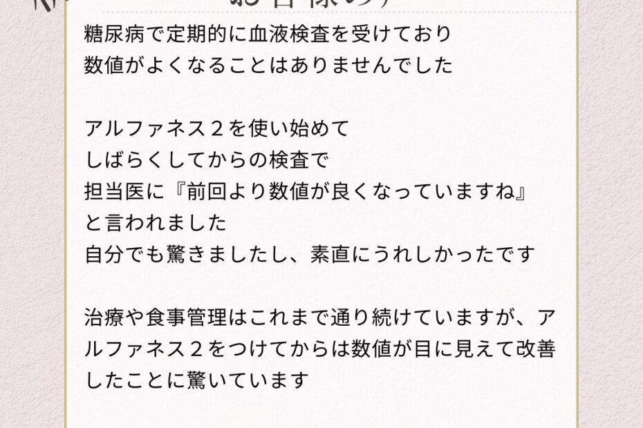 糖尿病でHbA1Cが改善したアルファネス2口コミ