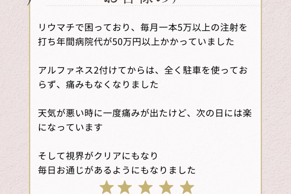 リウマチの治療費が年50万以上のかたがアルファネス2で改善した口コミ