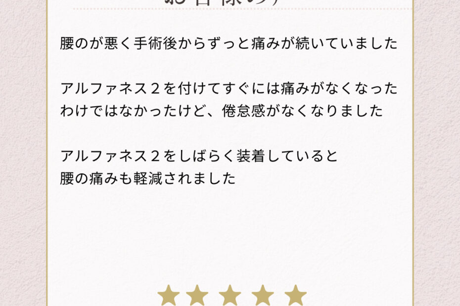 手術後も続く慢性腰痛がアルファネス2で改善した口コミ
