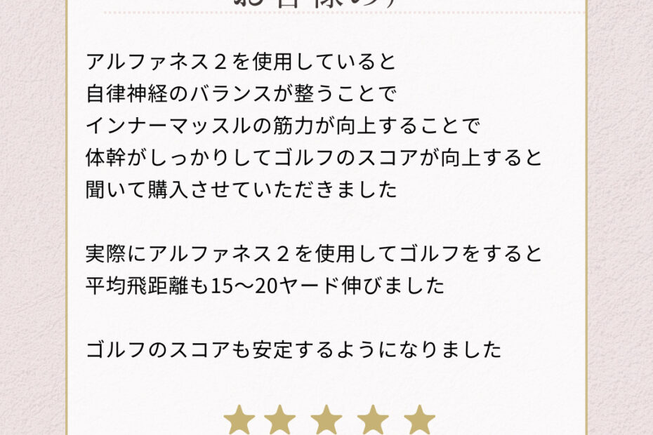 ゴルフの平均飛距離15~20ヤード伸びたアルファネス2の口コミ