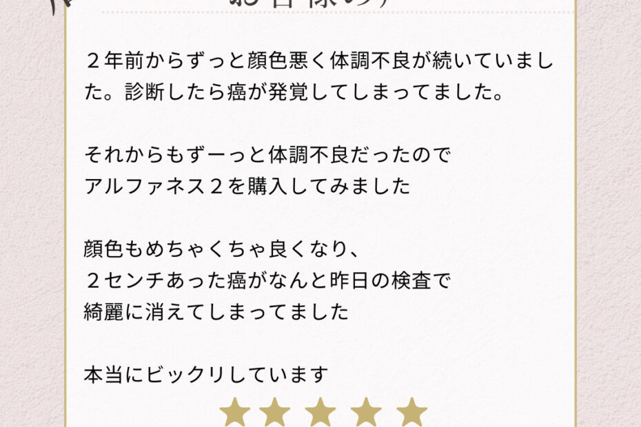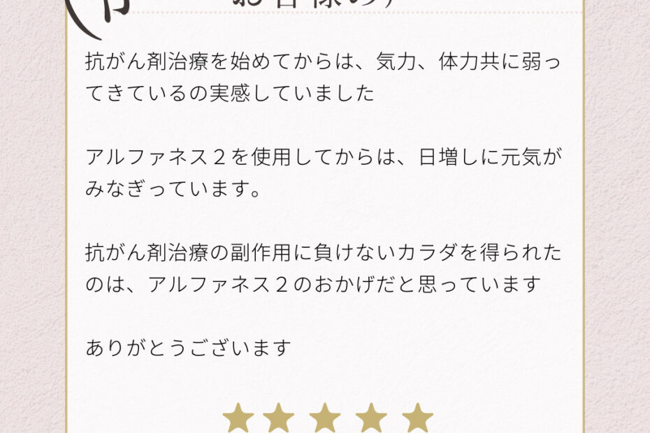 抗がん剤治療の副作用がアルファネス2で改善した口コミ