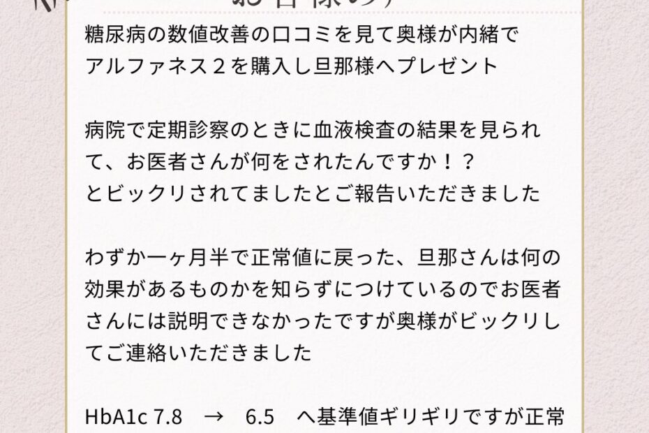 糖尿病の数値改善の口コミ アルファネス2